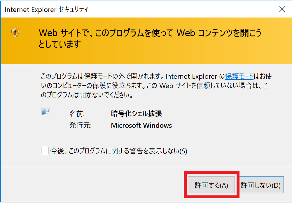 『警告』が表示された場合は『許可する』をクリックします。