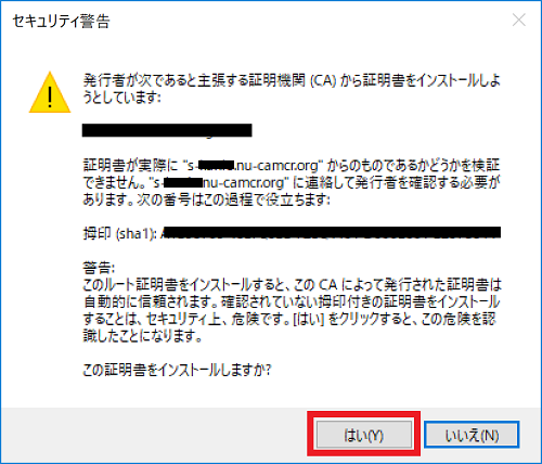 『はい』ボタンをクリックします。