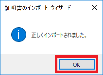 『正しくインポートされました』とのメッセージが出ます。『OK』ボタンをクリックします。
